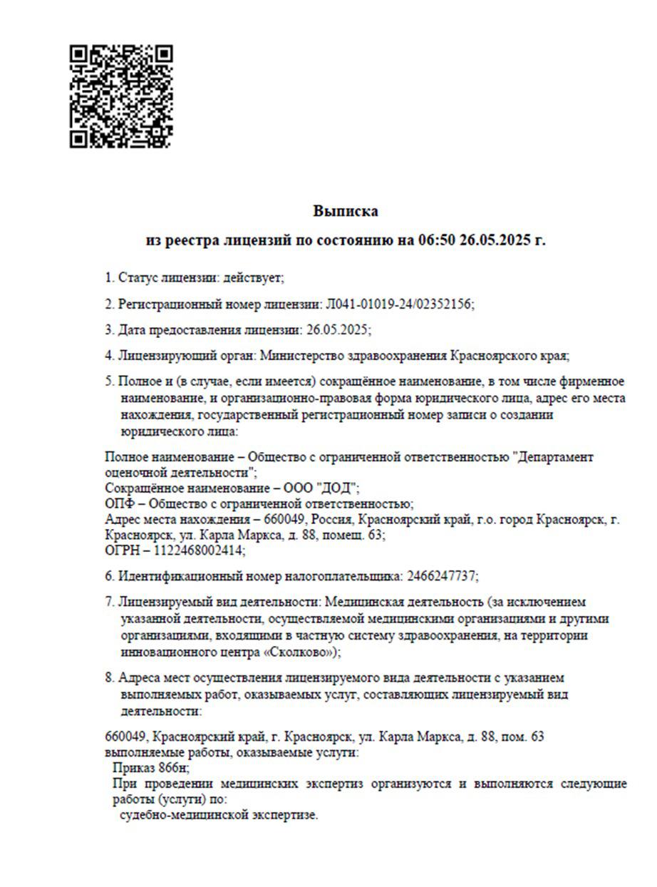 Документы, лицензии и сертификаты Департамента Оценочной Деятельности